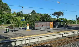 Once double-tracking of the railway line from Wellington was completed, the original station building was replaced in 1940 with the current island platform. The station's platform upgrade in 2010 raised platform height, bringing it into line with other stations on the network and added safety features such as yellow tactile strips and put electrical ducting in place to support a real-time passenger information system later introduced by the Greater Wellington Regional Council.[9]