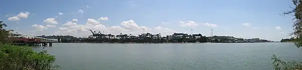 ![]() Pulau Brani lies to the right of the Keppel Harbour, as seen in this view from Sentosa's Tiger Sky Tower | |