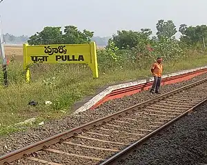 Pulla railway station (station code:PUA[1]), is an Indian Railways station in Andhra Pradesh. It is located in Pulla village. It lies on the Vijayawada–Nidadavolu loop line of Howrah–Chennai main line and is administered under Vijayawada railway division of South Central Railway zone.[2] Trains halt every day.