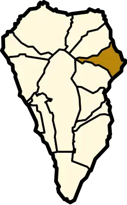 Puntallana is a town and a municipality on the island of La Palma, Province of Santa Cruz de Tenerife, Canary Islands, Spain. It is situated in the northeastern part of the island. The population of the municipality is 2,346 (2013)[3] and the area is 35.10 km².[1] The elevation is 420 m. Puntallana is 7 km northeast of the island capital Santa Cruz de La Palma.