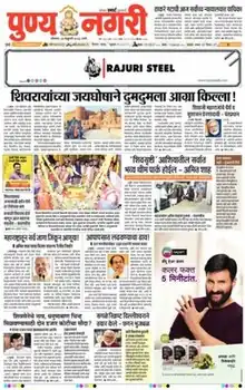 Punya Nagari is a Marathi language daily newspaper published in Maharashtra. It was established in 1999 by Muralidhar Shingote.[3][4][5] According to the Audit Bureau of Circulations, its average circulation is 416,625.[6] Punya Nagari newspaper is published from Mumbai, Nashik, Nanded, Pune, Ahmednagar, Thane, Nagpur, Dhule, Jalgaon, Kolhapur, Latur, Akola, Amravati, Aurangabad, Satara and Solapur.[7]