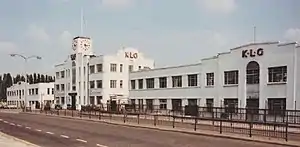 In 1919 Guinness sold the firm's distribution rights to S. Smith & Sons. In the inter-war years KLG sparking plugs made at Putney Vale were used in the majority of British cars. This included Henry Segrave's Golden Arrow and Malcolm Campbell's Blue Bird series, which set world land speed records.[13] In 1927 Smith & Sons bought KLG and in the 1930s built a new spark plug factory, in an art deco style, on the Putney Vale site. The factory was demolished in 1989 and replaced by an Asda superstore.[3] Asda donated the old factory gates, bearing the KLG logo, to the Brooklands Motor Museum.[15]