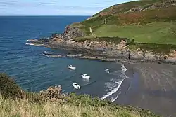 Pwllgwaelod (originally Y Pwll Gwaelod, Welsh for The Bottom Cove/Creek)[1] is a small scattered hamlet centred on a bay on the south-western side of the Dinas Island peninsula. It is in the community of Dinas Cross between Fishguard and Newport, Pembrokeshire, Wales. Many of the properties within the hamlet of Pwllgwaelod are holiday cottages.