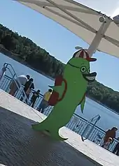 Along this spillway are a wildlife museum and the Linesville spillway, a site famous as "The Place Where the Ducks Walk on the Fishes' Backs".[2][6] Many people throw bread into the water here, and the resulting density of fish (carp) enables the ducks and other waterfowl to walk on top of the carp to vie for the thrown food. The spillway was renovated in 2007.[2] The Pennsylvania Department of Conservation and Natural Resources had planned to prohibit bread as food for the carp and ducks on January 1, 2009, only permitting commercial fish food as part of an effort to clean up the area and increase its wild nature, but subsequently reconsidered.[7]