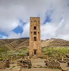 Hammadid emirs constructed five palaces, most of which are now destroyed. The keep of the Palace of the Fanal (Qasr al-Manar) does survive.[11] The upper palace consists of three buildings arranged around an irregularly shaped forecourt: a private apartment, a domed hall and an entrance wing.[12]