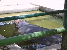 The zoo houses lions, brown bears, crocodiles, ostriches, camels, deer, gazelles, zebras, birds, lizards, snakes, and monkeys of various types.[2] There is also a hippopotamus named Dubi, who shares his small concrete wading pool with a family of peacocks.[3] In December 2003, the zoo was described in The Guardian as "one of the West Bank's more pleasant surprises [...] there is a small but beautiful landscaped park. [...] And amid the trees, in spacious, clean enclosures, a lioness, an ostrich, a family of bears, a pool full of crocodiles."[6] The animals have ample room to move around with some enclosures as big as those in the London Zoo.[4]
