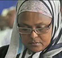 Qamar Aden Ali (Somali: Qamar Aadan Cali, Arabic: قمر آدم علي) (b. 19 September 1957 – d. 3 December 2009) was a Somali lawyer and politician. She was assassinated whilst serving as the Minister of Health in the Transitional Federal Government of Somalia.