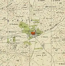 1870s map 1940s map modern map 1940s with modern overlay mapA series of historical maps of the area around Qannir (click the buttons) | |