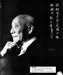 After the establishment of the People's Republic of China in 1949, Qian became Chair of the Department of Civil Engineering of Zhejiang University in 1950. In January 1952, after repeated invitations from Qu Bochuan, President of Dalian Institute of Technology (now Dalian University of Technology or DUT), Qian agreed to move to Dalian to teach at DUT. He spent the rest of his career there, and succeeded Qu as the second president of the university.[1][4] In 1955, he became one of the founding members of the Chinese Academy of Sciences.[1][4][5]