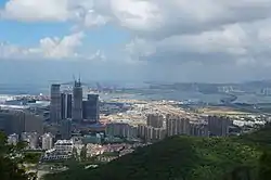 Qianhai Shenzhen-Hong Kong Modern Service Industry Cooperation Zone (simplified Chinese: 前海深港现代服务业合作区; traditional Chinese: 前海深港現代服務業合作區; pinyin: Qiánhǎi Shēngǎng Xiàndài Fúwùyè Hézuòqū) is a commercial development in Shenzhen, Guangdong that is also known as Qianhai New District. Located in Nanshan District and encircled by the Shuangjie River, Yueliangwan Boulevard, Mawan Boulevard and Qianhai Bay, Qianhai covers an area of approximately 15 square kilometres (5.8 sq mi), comprising almost entirely reclaimed land. The project is expected to be completed by 2020.[1]