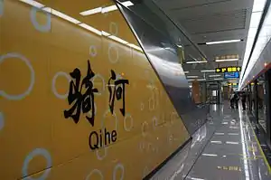 Qihe Station (Chinese: 骑河) is a station of Line 2, Suzhou Rail Transit. The station is located in Xiangcheng District of Suzhou. It started service in September 24, 2016, when Line 2 extension started service.[1]