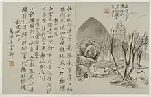 Kunqu opera matured and led toward the later Chinese opera tradition of drama, poetry and music combined. The painter-poet tradition thrived with exemplars such as Yun Shouping.[5] The challenge for researchers grew as even more people became poets and even more poems were preserved, including (with Yuan Mei's encouragement) more poetry by women.[6] In 1980 fine shi poems by the famed Qing novelist Liu E were published for the first time, illustrating the potential to continue finding sunken treasure in the vast body of surviving Qing poetry.[7]