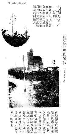 The Qingdao Observatory is located on the summit of Guanxiang Mountain in the Shinan District of Qingdao, China. The existing building complex was originally built in 1905. Qingdao Observatory was once an important scientific research institute in Qingdao, and also played an important role in the development of modern meteorology and marine science in China. Together with Shanghai Xujiahui Observatory and Hong Kong Observatory, they once were known as the "Three Observatory in the Far East".[1] Qingdao Observatory has been listed as "Meteorology Observation Dome" amongst the "Top Ten Scenic Spots in Qingdao".[2] Its building complex now belongs to the North Sea Fleet of the PLA (People’s Liberation Army) Navy and the Zijinshan Observatory of the Chinese Academy of Sciences, and is part of the Qingdao German Building Complex, a national key cultural relics conservation site.[3]