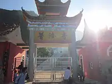 Puji Temple is the largest Buddhist temple in the town. Located on the top of Furong Mountain of Furong Village, it was originally built in the Yuan dynasty (1271–1368) and later destroyed and rebuilt several times. It was last rebuilt in 2013. Buddha Qing'an is the main target of worship, the temple also worship the Three Saints of the West and Guan Yu.