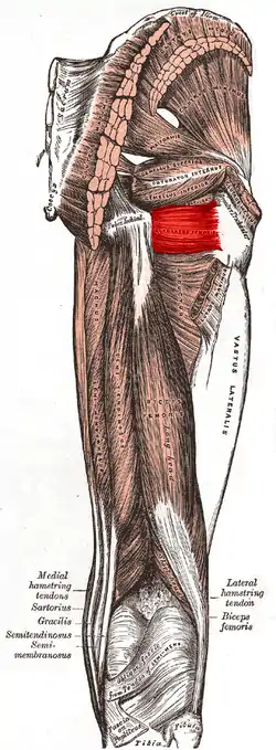 At its origin, the upper margin of the adductor magnus is separated from it by the terminal branches of the medial femoral circumflex vessels.