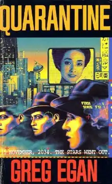 Quarantine is a 1992 hard science fiction novel by Greg Egan. Within a detective fiction framework, the novel explores the consequences of the Copenhagen interpretation of quantum mechanics (or rather of its consciousness causes collapse variant), which Egan acknowledges was chosen more for its entertainment value than for its likelihood of being correct.[1]
