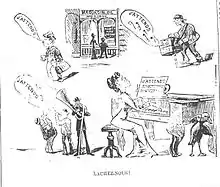 Caricatures have appeared in newspapers in Quebec since at least the 18th century. A political poster using speech balloons from 1792 has been attested.[3] Most were anonymous, but one, titled "La Ménagerie annexionniste", by William Augustus Leggo was another early francophone use of speech balloons. Speech balloons thereafter became more common in caricatures and advertising, and humorous and satirical publications also proliferated.[4]