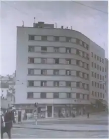 Hotel Astoria's mid 1930s construction was financed by Đurđe S. Ninković,[1] owner of various hospitality properties around the city of Belgrade, such as the Branislav Kojić-designed Hotel Pošta that had opened in 1930 on the opposite end of the Sava Square.[2] For Hotel Astoria, which was envisioned as a bigger hotel, Ninković commissioned the building design to his own son-in-law, architect Ivan Savković[1] who later, in 1950, went on to co-design the post-World War II building at 14 King Milan Street that housed the PR Serbia Assembly. The newly built hotel opened in 1937 and became one of the first modernist buildings in Belgrade with Streamline Moderne elements, applying a minimalist façade design and relying on simple geometric lines rather than ornate decorations. The building has since been given the status as a significant architectural milestone in Serbian architecture.