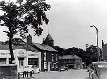![]() Queen's Square in the mid-20th century, looking east to the junction of Chapel Street and Higher Green. None of the buildings on the left of the picture remain | |