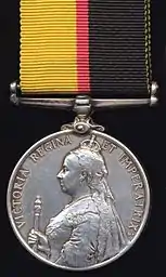 The Queen's Sudan Medal was authorised in March 1899 and awarded to British and Egyptian forces which took part in the Sudan campaign between June 1896 and September 1898.[1]