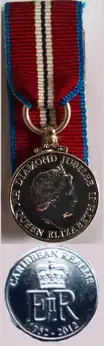 ![]() Queen Elizabeth II Diamond Jubilee Medals: Canada (left), Caribbean realms (centre), and United Kingdom and Commonwealth (right) | |