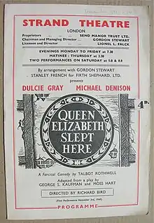 Queen Elizabeth Slept Here is a comedy play by the British writer Talbot Rothwell. It was inspired by Moss Hart and George S. Kaufman's 1940 Broadway play George Washington Slept Here, with the setting switched to England and many alterations to the plot and characters. The story takes place at an Elizabeth era cottage in Buckinghamshire.
