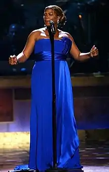 Queen Latifah is an American rapper, jazz/blues singer, and actress. Born Dana Owens, she has released seven studio albums, six of which were hip hop-influenced albums and two that were all-singing jazz-influenced albums. She has released a total of twenty-three singles as well. She has been given the title the "Queen of Jazz Rap".[1]