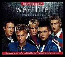 "Queen of My Heart" is a song by Irish boy band Westlife. It was released on 5 November 2001 as the first single from their third studio album, World of Our Own (2001). It was released as a double A-side single with "When You're Looking Like That" in the United Kingdom and Ireland.[2]