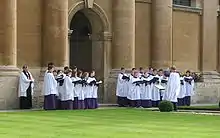 The chapel is noted for its Frobenius organ in the west gallery.[14][15] It was installed in 1965, replacing a Rushworth and Dreaper organ from 1931. The earliest mention of an organ is 1826. The Chapel Choir has been described as "Oxford's finest mixed-voice choir" and continues to perform termly concerts, recent examples of which include Handel's Messiah and Bach's St John Passion.[16][17] The chapel has stood virtually unchanged since it was consecrated by the Archbishop of York in 1719.