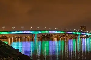 The Queensway Twin Bridges (sometimes Queens Way Bridges or Queensway Bay Bridge) connect downtown Long Beach with the outer Port of Long Beach. They are the southernmost crossing of the Los Angeles River, near the mouth of the river, where it empties into Queensway Bay, and they are the primary arterial link between Long Beach and RMS Queen Mary. The bridges were completed in June 1970[1] and opened on October 5, 1970.[2]