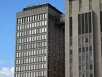 Queeny Tower, built in 1965 and named for Monsanto Company founder John Francis Queeny, is a former medical facility on the campus of Washington University School of Medicine. At 321 feet (98 m), it is the third tallest medical-related building in the Western Hemisphere, as well as the second tallest building (after the Park East Tower) in St. Louis outside the downtown area. The building closed in November 2019 and demolition of the building began in March 2021 to make way for a new 7-story inpatient tower.