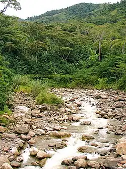 The Quinimarí River rises in the Tamá Massif.[1] It drains the southern slope of the Táchira depression.[2] It is located in the municipality of Córdoba in the state of Táchira, Venezuela. It joins the Torbes River and then flows into the Uribante River, a tributary of the Apure River, in the Orinoco basin. The Quinimarí basin holds extensive areas producing coffee and sugar cane, which are favored by the humid mountain climate of the area. The river is named after the "Quenemaríes" indigenous people that inhabited this part of the Venezuelan Andes.