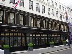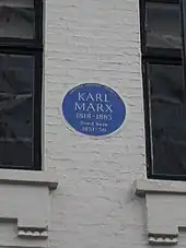 The restaurant occupies numbers 26–29 Dean Street. Nos. 26–28 form a uniform group built in c. 1734 by the carpenter John Nolloth, of St James's, and No. 29 was built in c. 1692.[4] The sculptor Joseph Nollekens was born in the latter house in 1737; a later resident was the composer François-Hippolyte Barthélémon.[4] Karl Marx and his family lived in two small rooms at No. 28, described as an "old hovel", between 1851 and 1856;[4] his residency is commemorated by a London County Council blue plaque.[5] It was due to the association with Marx that numbers 26–28 were made a Grade I listed building on 14 January 1970.[5]
