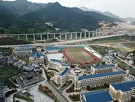 The Quzhou–Ningde railway is a single-track electrified railway in China. The combined passenger and freight line is 379 kilometres (235 mi) long and has a design speed of 160 kilometres per hour (99 mph). The journey time is 5 hours and 27 minutes.[1]