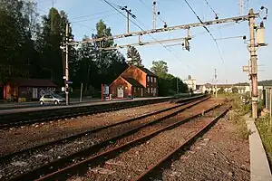 Rånåsfoss Station (Norwegian: Rånåsfoss stasjon) is a railway station located in Rånåsfoss in Sørum, Norway on Kongsvinger Line. The station was built in 1918 as part of the Kongsvinger Line. The station is served hourly, with extra rush hour departures, by the Oslo Commuter Rail line R14 operated by Vy.