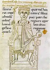 Speyer flourished under Huzmann's rule.[27] The Emperor supported Speyer Cathedral, which has several Salian dynasty tombs in its crypt,[27] including Henry's parents and grandparents.[26] In June 1075, Henry IV gave control of the Cyriakusstift Eschwege convent to the Prince-Bishopric of Speyer and allowed the bishop to appoint the abbess.[28] In addition to several other estates and abbeys,[29] some of them in Saxony or Hesse,[30] he also gifted two counties to the Prince-Bishopric,[2] Lutramsforst and Forchheim.[31]