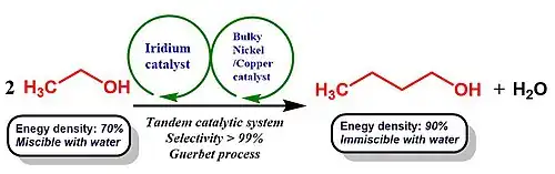 11. Chakraborty, Sumit; Piszel, Paige E.; Hayes, Cassandra E.; Baker, R. Tom; Jones, William D. (18 November 2015). "Highly Selective Formation of n-Butanol from Ethanol through the Guerbet Process: A Tandem Catalytic Approach". Journal of the American Chemical Society. 137 (45): 14264–14267. doi:10.1021/jacs.5b10257. PMID 26526779.