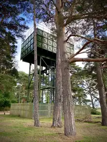 The connecting length of the eastern perimeter road is used as a cycle track. No buildings around the airfield area exist, although the old water tower still stands to the north west of the airfield on Roundhill campsite, a Forestry Commission site which uses part of the old access roads of the airfield. Small parts of the former airfield are now covered with conifers.