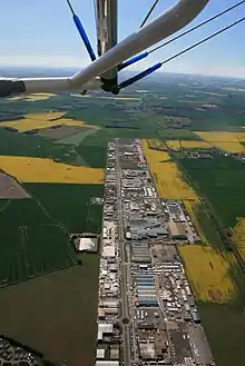 RAF Carnaby was for many years used for the storage of new Lada cars and a parts distribution centre.[12] The runway and other paved areas were also used to hold motorcycle racing events throughout the 1970s and 1980s, some of which were televised.[13] Today it has been developed into Carnaby Industrial Estate.[11]