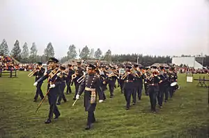 ![]() The Band of RAF Germany perform at the RAF Police Dog Trials on the RAF sports fields at JHQ Rheindahlen, September 1974 | |