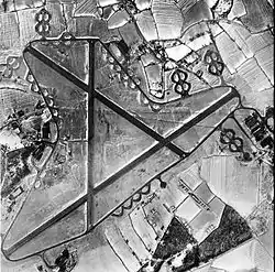 ![]() Aerial photograph of the USAAF 2d Tactical Air Depot oriented north, located to the northeast of the Stansted Mountfichet Airfield 8 May 1948 | |