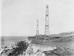 Following the development and introduction of early-warning radars during the mid 1930s in locations such as RAF Bawdsey and Orford Ness, the Air Ministry set out a programme of building a ring of coastal radar stations around the British coast to provide early warnings of air attacks, codenamed Chain Home (CH). Ventnor was one of 20 original Chain Home stations authorised in 1937 and became operational in October 1938 using experimental transmitters and receivers in temporary hutting. The site, like most Chain Home stations, was powered by the National Grid but had electric generators to cover for interruptions in the supply.[4] The station subsequently went on 24-hour watch from early 1939 and was put on a war footing on 24 August 1939 in preparation for war.