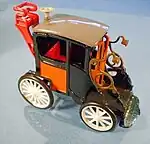 Early diecast collector Cecil Gibson noted the delightful features of RAMI models as early as 1971, pointing out the company's unique selection (from museum vehicles), delicate details (like spare tires and long brake and tiller levers) and whimsical features (as in 'mother-in-law' seats and parasol tops which do not cover the passengers.[5] Neither did RAMI shy away from odd body shapes – whether late 1800s boilers, curved boat-tails, spare wheel covers on roofs, or the varied folds and waves of landaulet covering material (in plastic or diecast metal.[6] Models often had combinations of vibrant colors, and appear much more striking in person than in photographs.