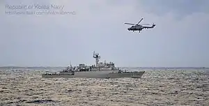 The Pohang class is a series of corvettes built by different Korean shipbuilding companies. The class consists of 24 ships and some after decommissioning were sold or given to other countries. There are five different types of designs in the class from Flight II to Flight VI.[2]