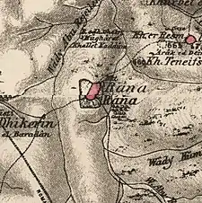 In 1863 Victor Guérin described it as a "village now reduced to a few huts, but that once had been much more considerable, judging by two beautiful wells dug in the rock and by a number of great stones scattered here and there".[7] An Ottoman village list of about 1870 showed that Ra'na had 8 houses and a population of 30, though the population count included men, only.[8][9]