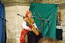 The rabel (or arrabel,[1] robel, rovel[2]) is a bowed stringed instrument from Spain, a rustic folk-fiddle descended from the medieval rebec, with both perhaps descended from the Arab rabab.[3] The instrument generally has two or three strings of gut or steel, or sometimes twisted horse-hair.[4][5] The instrument is first mentioned in the 12th century, and it is still used in parts of Latin America, as well as the Spanish provinces of Cantabria and Asturias.