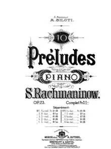 Ten Preludes, Op. 23, is a set of ten preludes for solo piano, composed by Sergei Rachmaninoff in 1901 and 1903. This set includes the famous Prelude in G minor.
