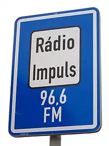 Road sign of Radio Impuls in Prague, the Czech Republic.