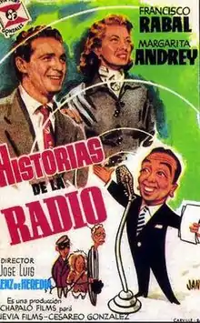 Radio Stories (Spanish:Historias de la radio) is a 1955 Spanish comedy film composed by three episodes directed by José Luis Sáenz de Heredia. A decade later the director returned to the theme with his Television Stories which updated the plot, but was less successful.[1]