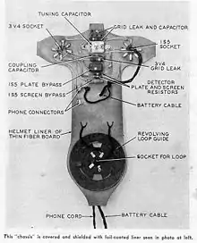 The 1S5 tube functioned as a regenerative detector. Audio detected by the 1S5 was resistance-coupled to the 3V4, where it was amplified and supplied to the earphone.